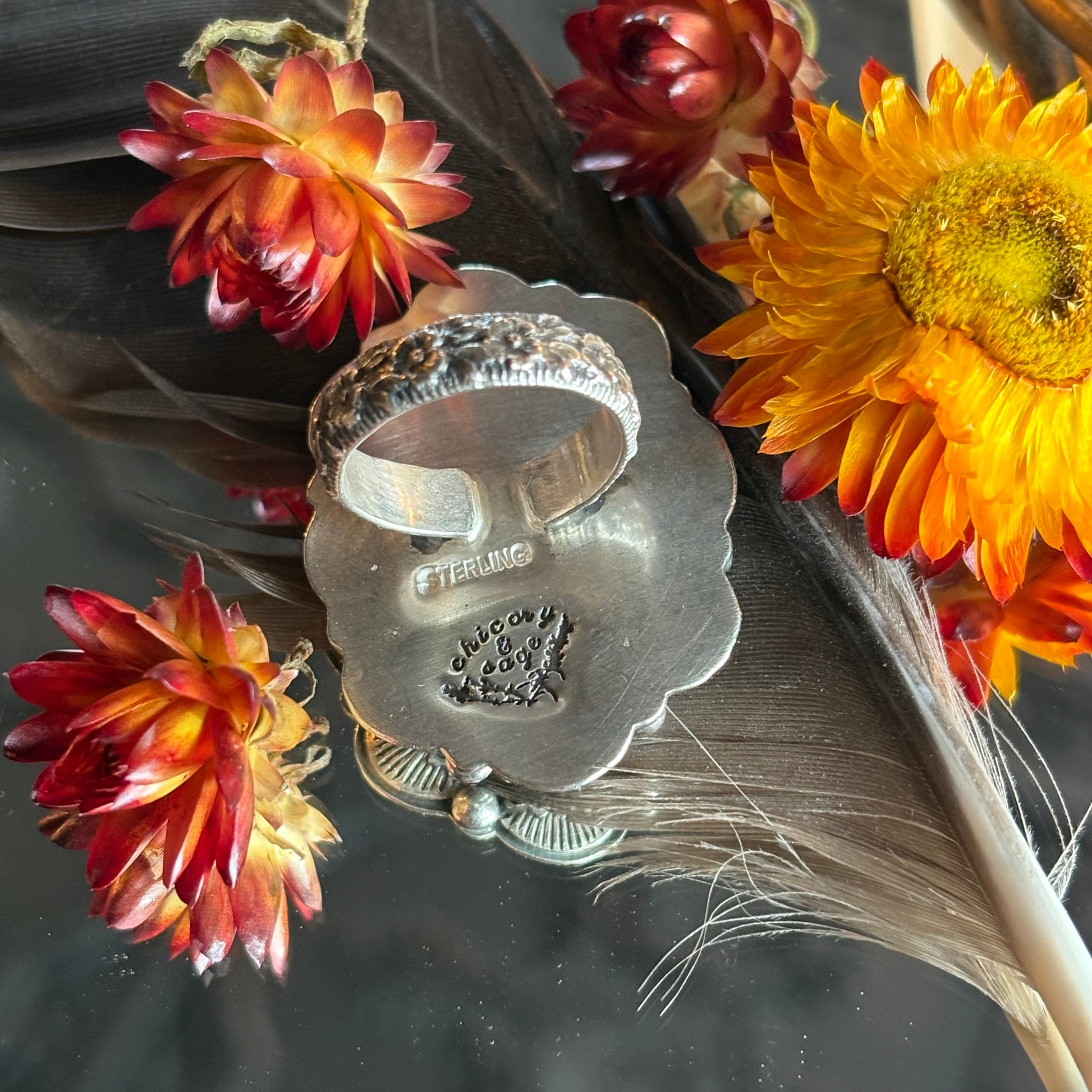 I created a hand stamped cloudburst design to frame this stunning piece of Evans Turquoise.