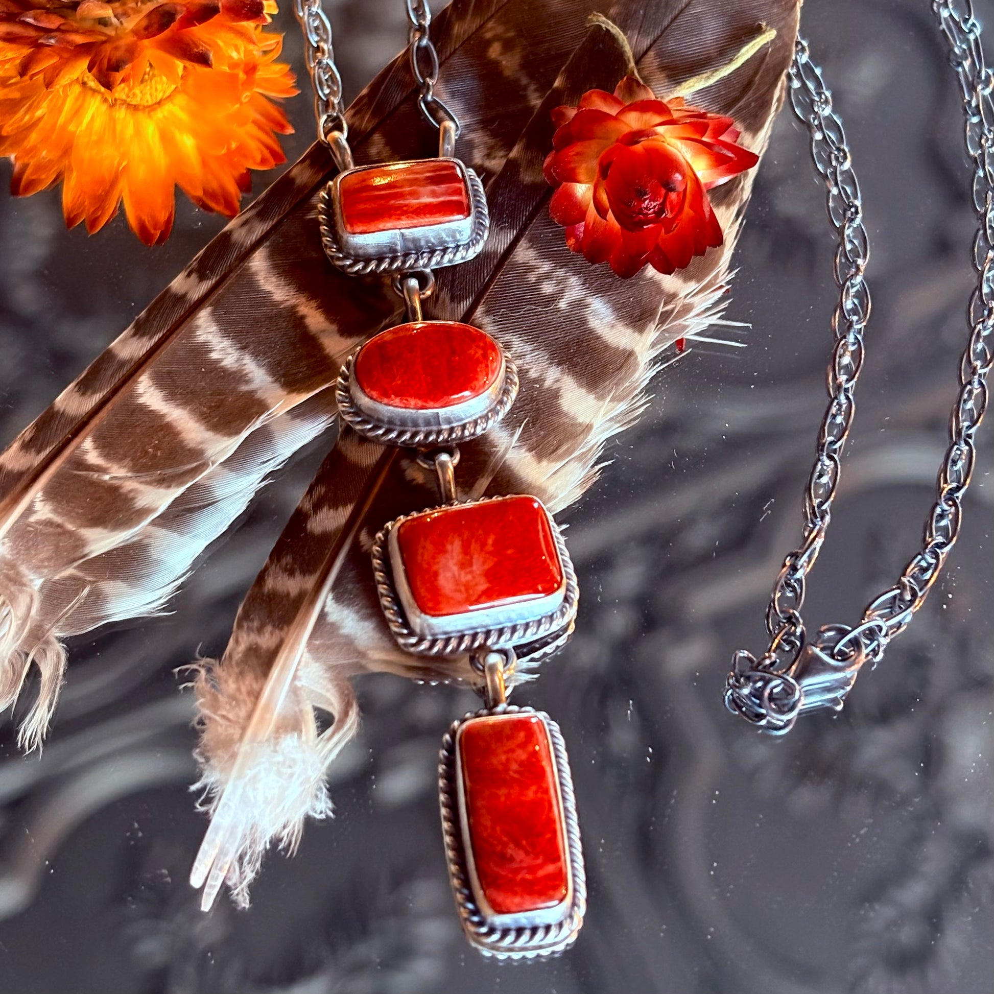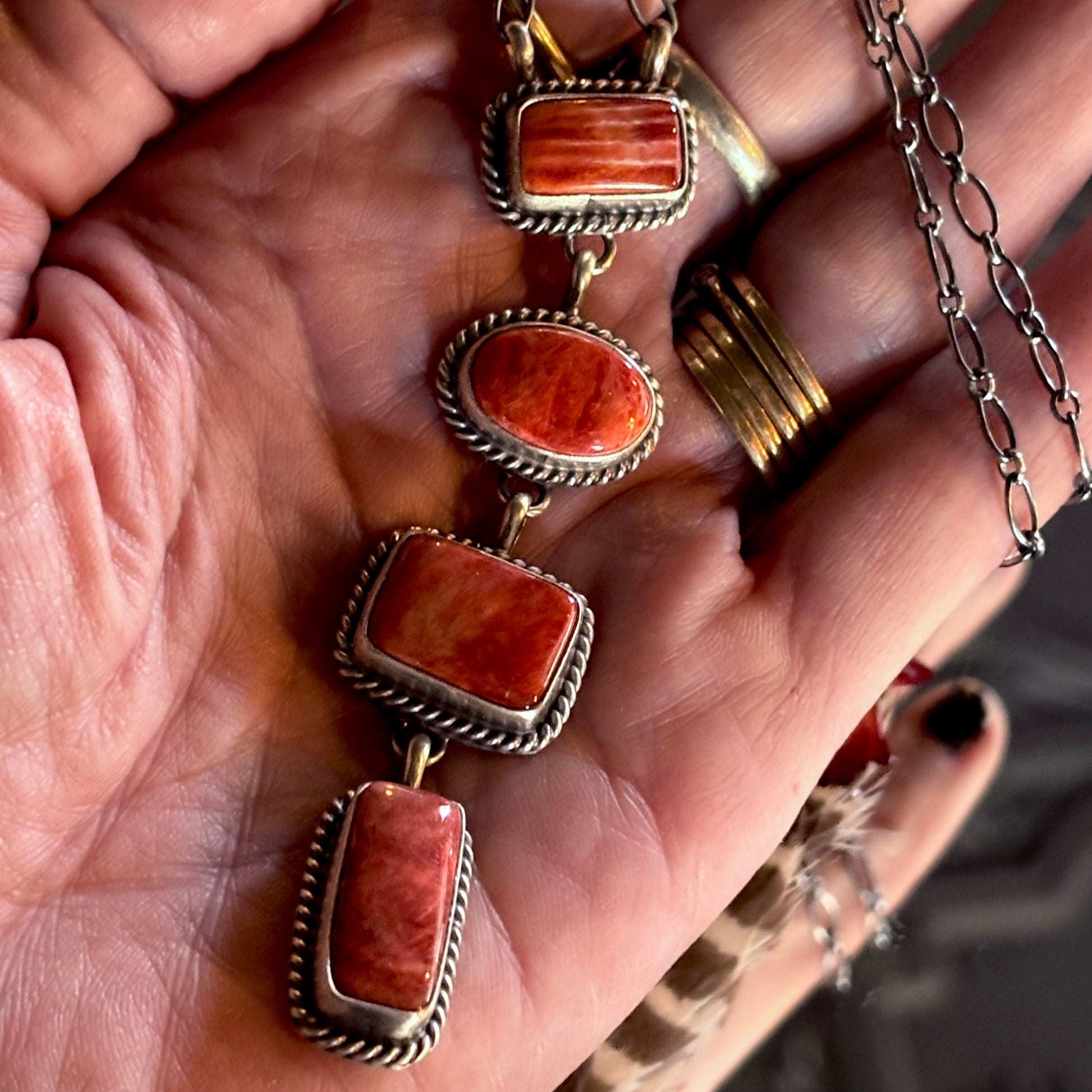 Red Spiny Oyster Lariat Necklace // Navajo // Tricia Smith