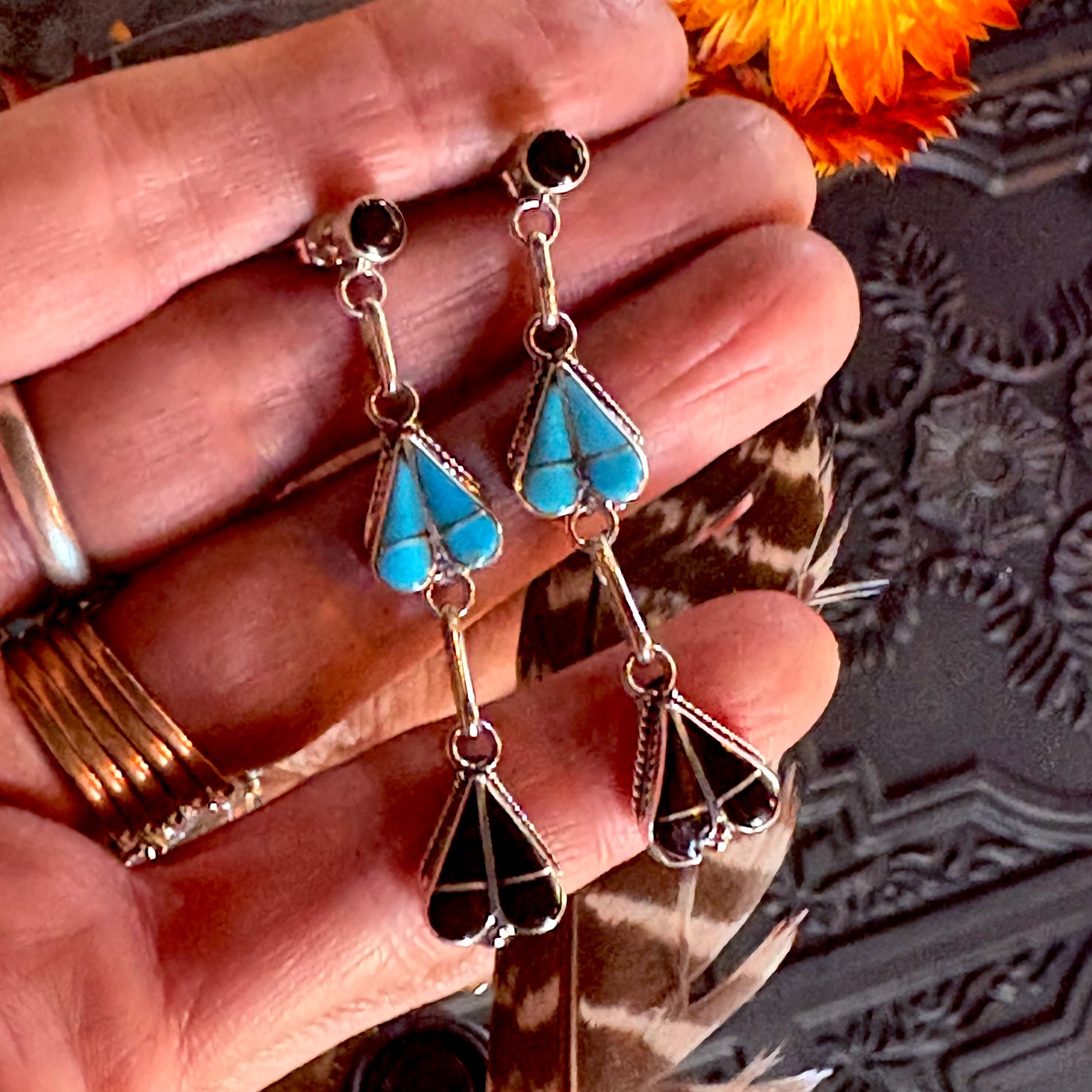 These are handcrafted from Kingman Turquoise, Onyx and Solid Sterling Silver.